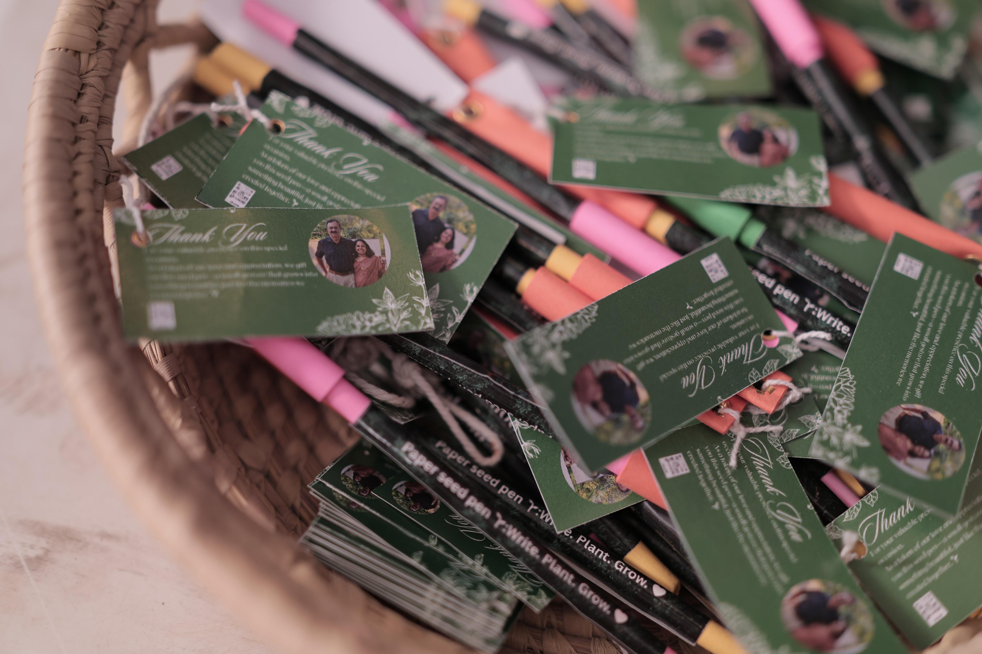 Our Handmade Plantable Paper Seed Pens are a unique and eco-friendly gift that combines practicality with sustainability. Each pen is crafted by hand using biodegradable paper embedded with a variety of plantable seeds. After use, simply plant the pen’s seed paper in soil, and watch as flowers, herbs, or vegetables grow. These pens are not only functional writing tools but also a green alternative to traditional pens. Perfect for gifting, giveaways, or personal use, they offer a meaningful way to reduce waste while encouraging the beauty of nature. Eco-conscious and stylish, these pens make a lasting impression.